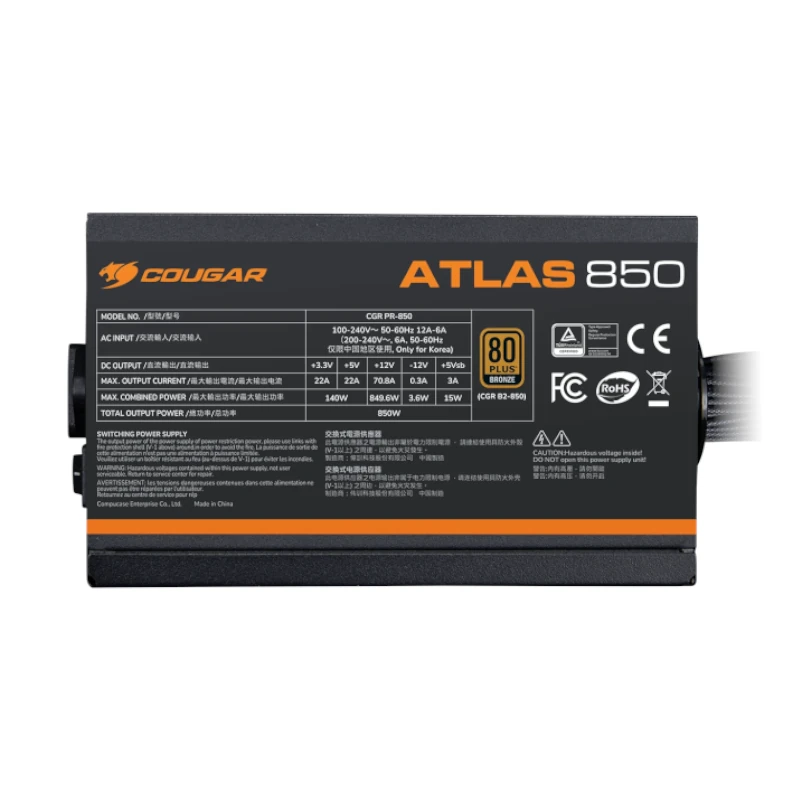 A Cougar ATLAS 650W 80+ Bronze é uma fonte de alimentação fiável e eficiente, ideal para sistemas gaming e setups de produtividade que exigem estabilidade e desempenho consistente. Com certificação 80 PLUS Bronze, oferece eficiência energética até cerca de 87%, reduzindo desperdícios e garantindo um funcionamento mais económico e silencioso .