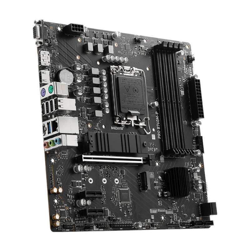 Leve seu PC para o próximo nível com a MSI PRO B760M-P DDR5 mATX LGA1700, uma placa-mãe mATX projetada para gamers e criadores de conteúdo que buscam performance, estabilidade e expansão. Compatível com os processadores Intel Core de 12ª e 13ª geração, Pentium Gold e Celeron, ela combina tecnologia de ponta com recursos de alta durabilidade.